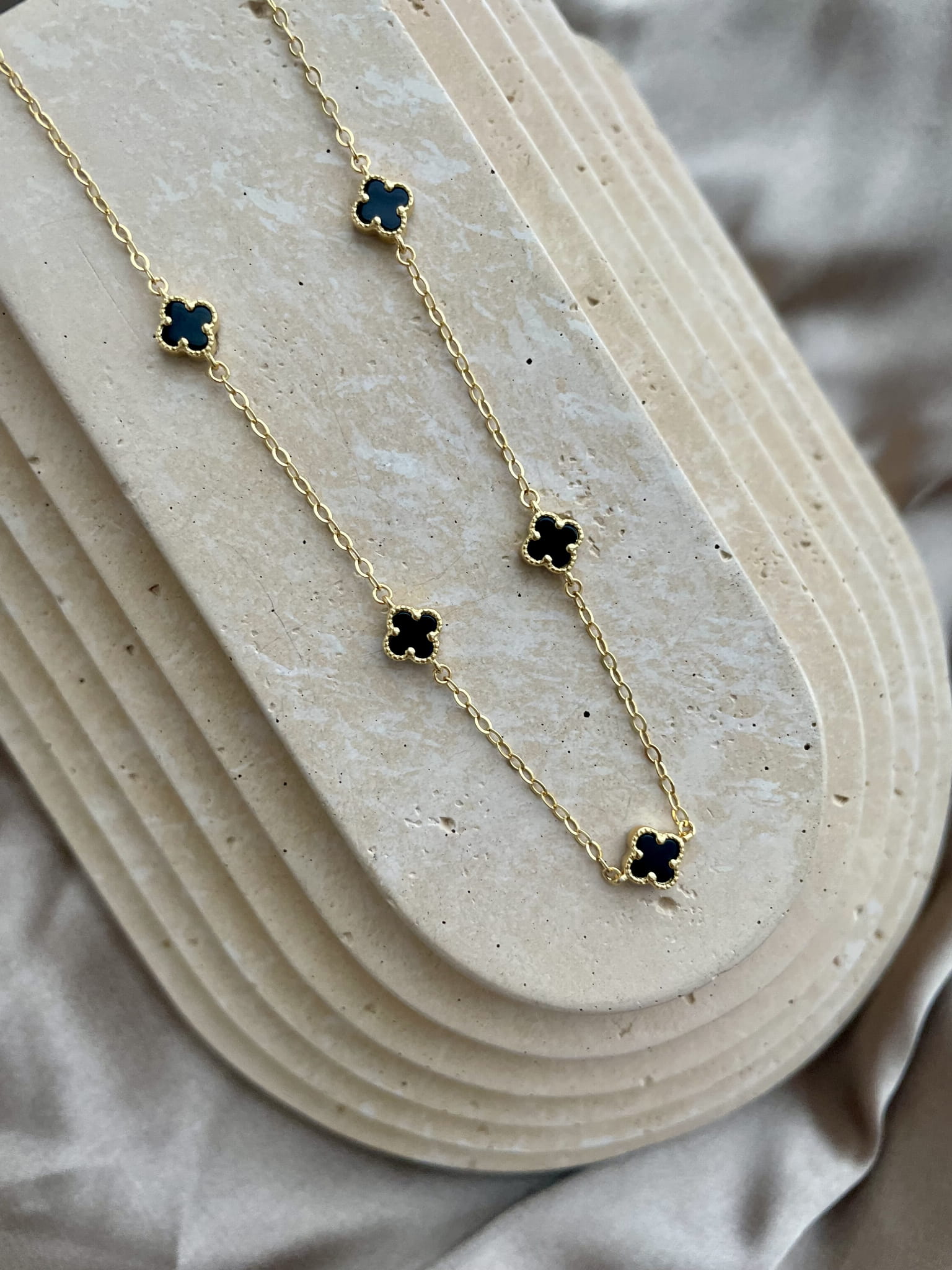Delikatny naszyjnik z CZARNYMI koniczynami marokańskimi srebro pozłacane