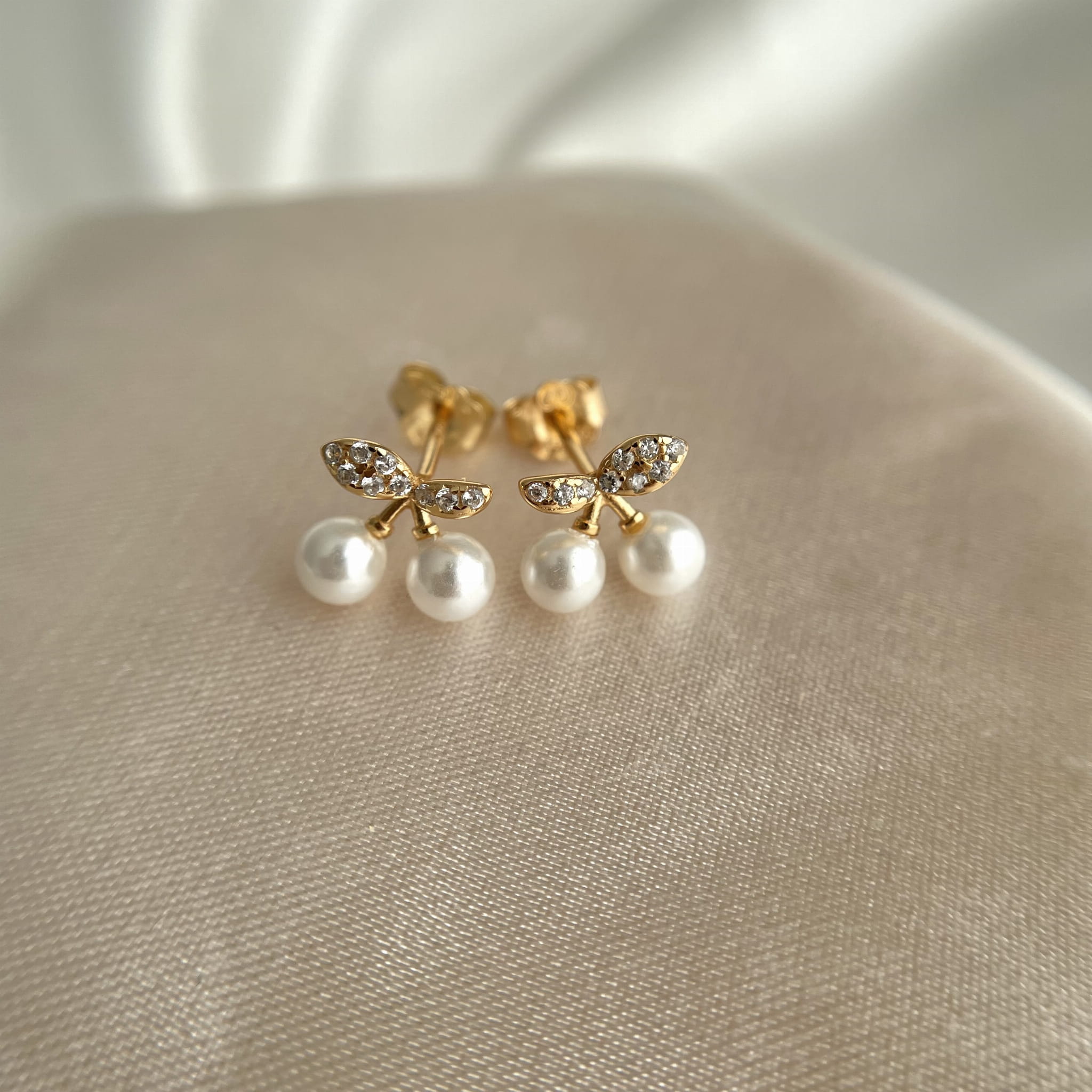 Kolczyki wisienki PEARL CHERRIES srebro pozłacane
