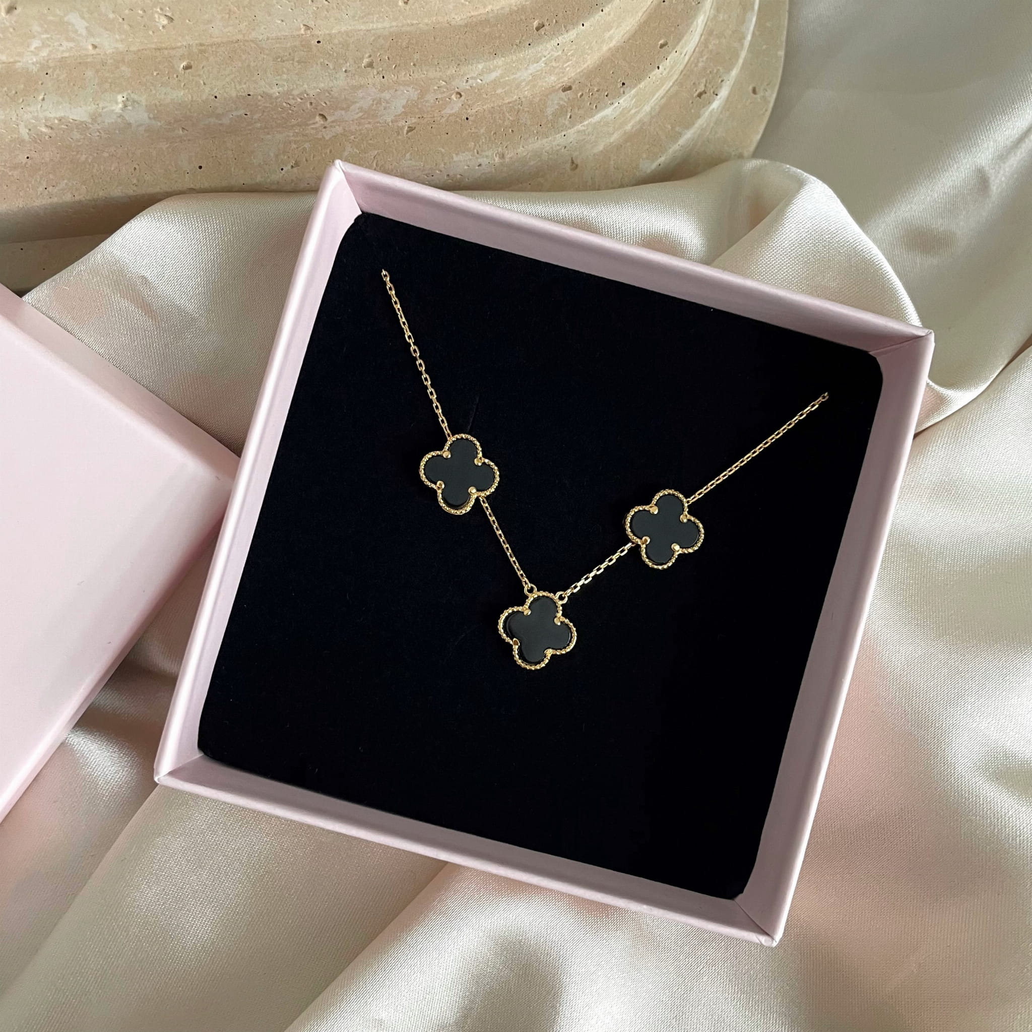 Komplet biżuterii z czarną koniczyną marokańską CLASSIC srebro pozłacane