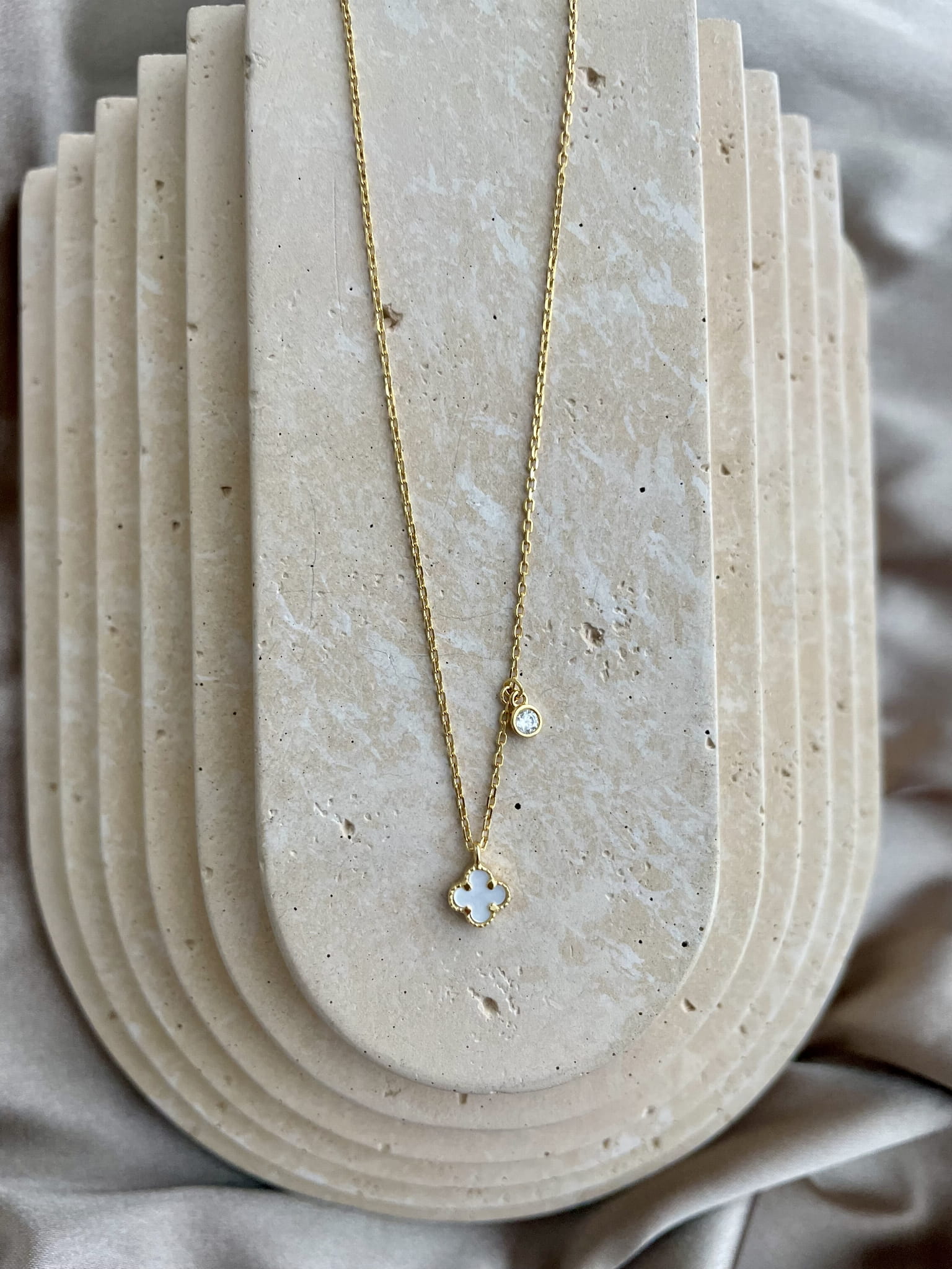 Minimalistyczny naszyjnik z BIAŁĄ koniczyną marokańską srebro pozłacane