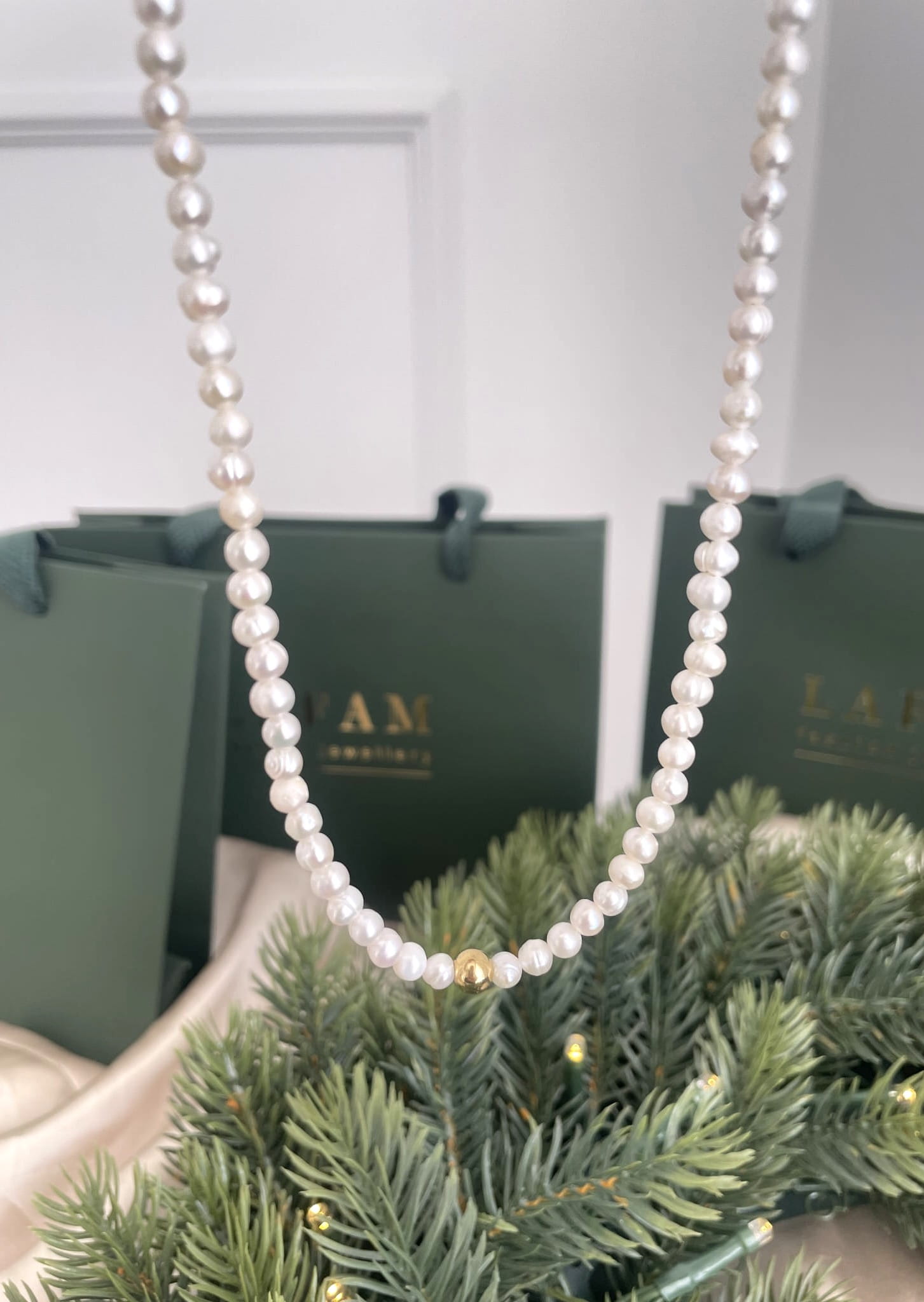 Naszyjnik z naturalnych pereł ze złotą kulką