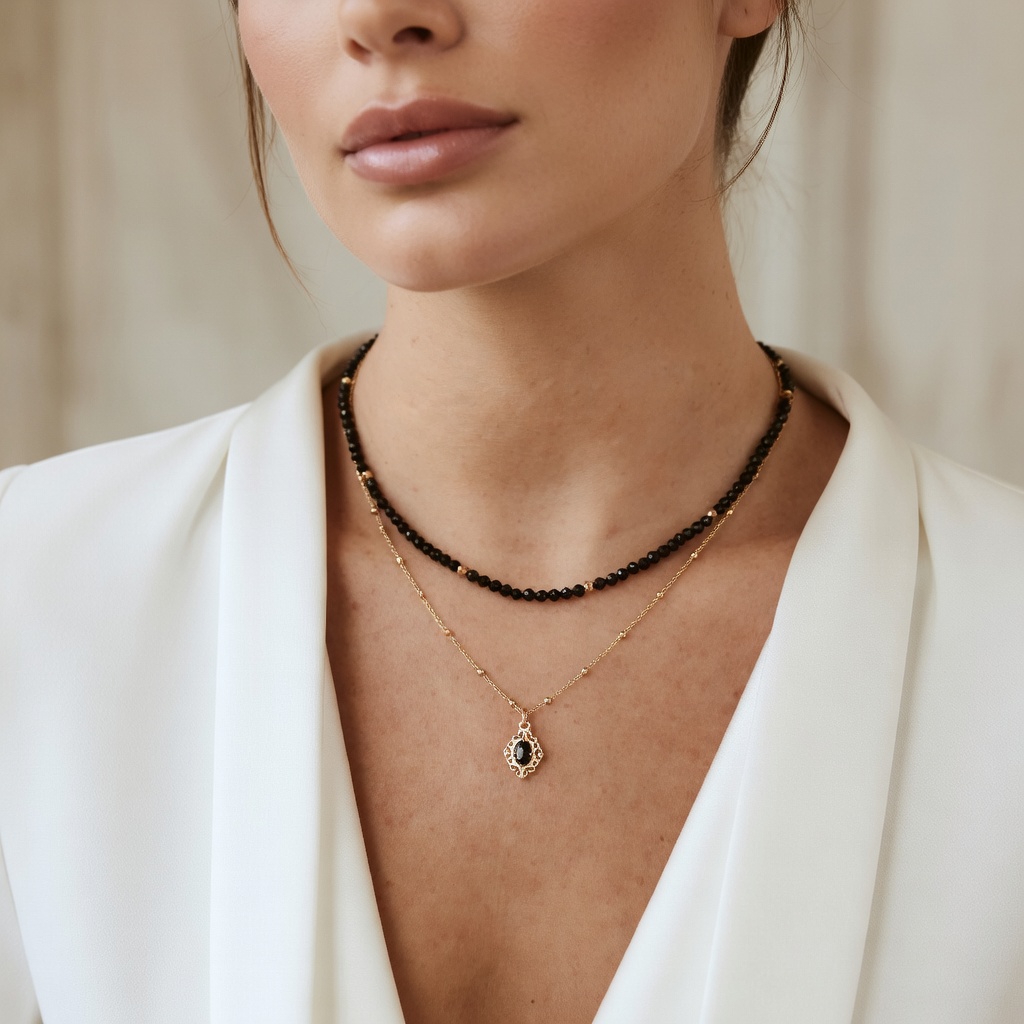 Naturalny onyks symbolizuje siłę, odwagę oraz wewnętrzną stabilność. Od wieków uważany jest za kamień ochronny, wspierający pewność siebie, koncentrację i spokój. Nadaje biżuterii wyjątkowego, energetycznego znaczenia.