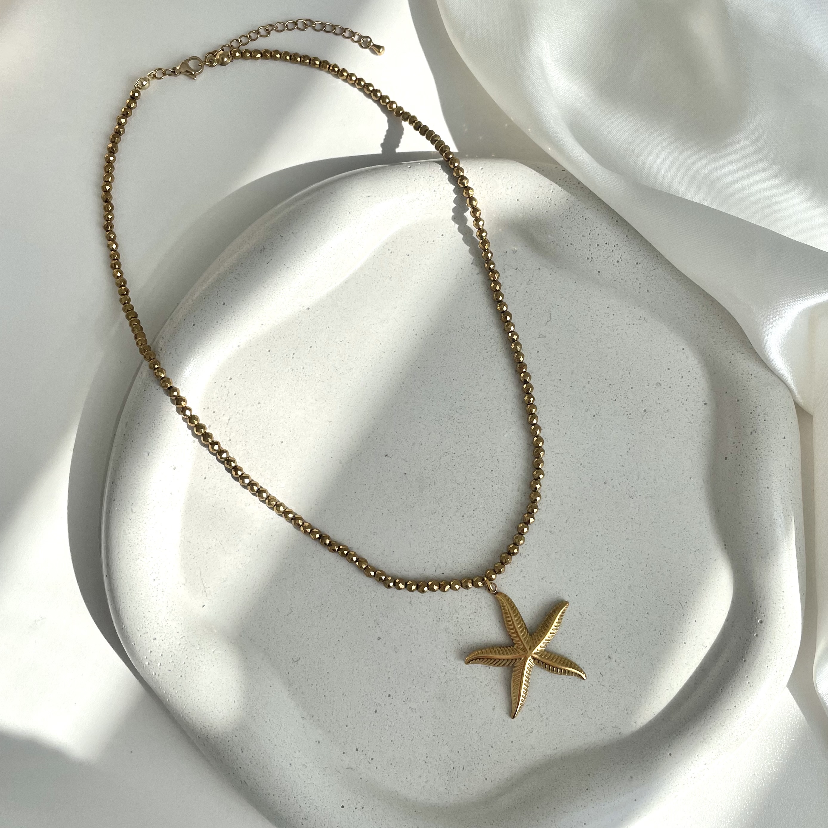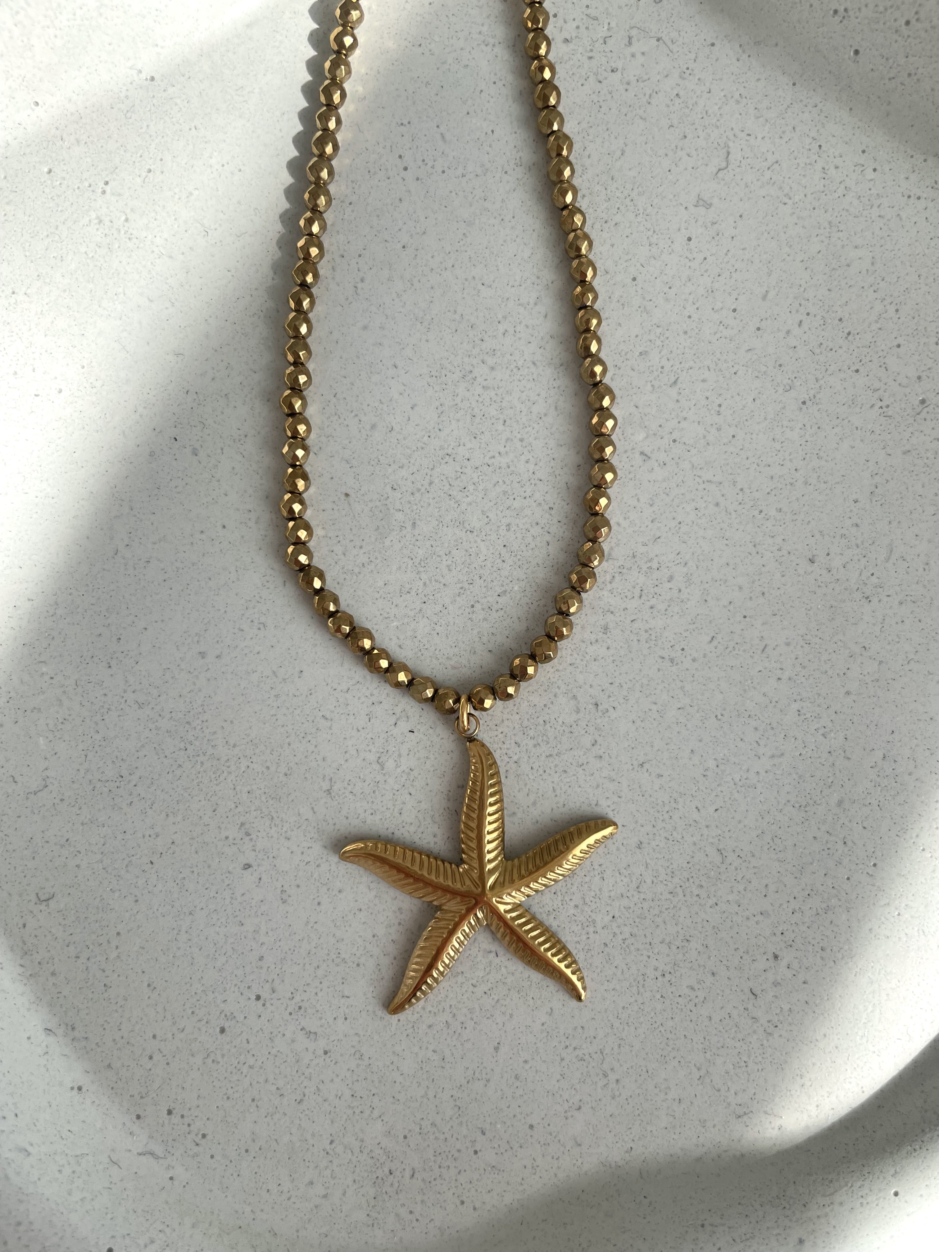 Naszyjnik ze złotych hematytów z zawieszką w kształcie rozgwiazdy