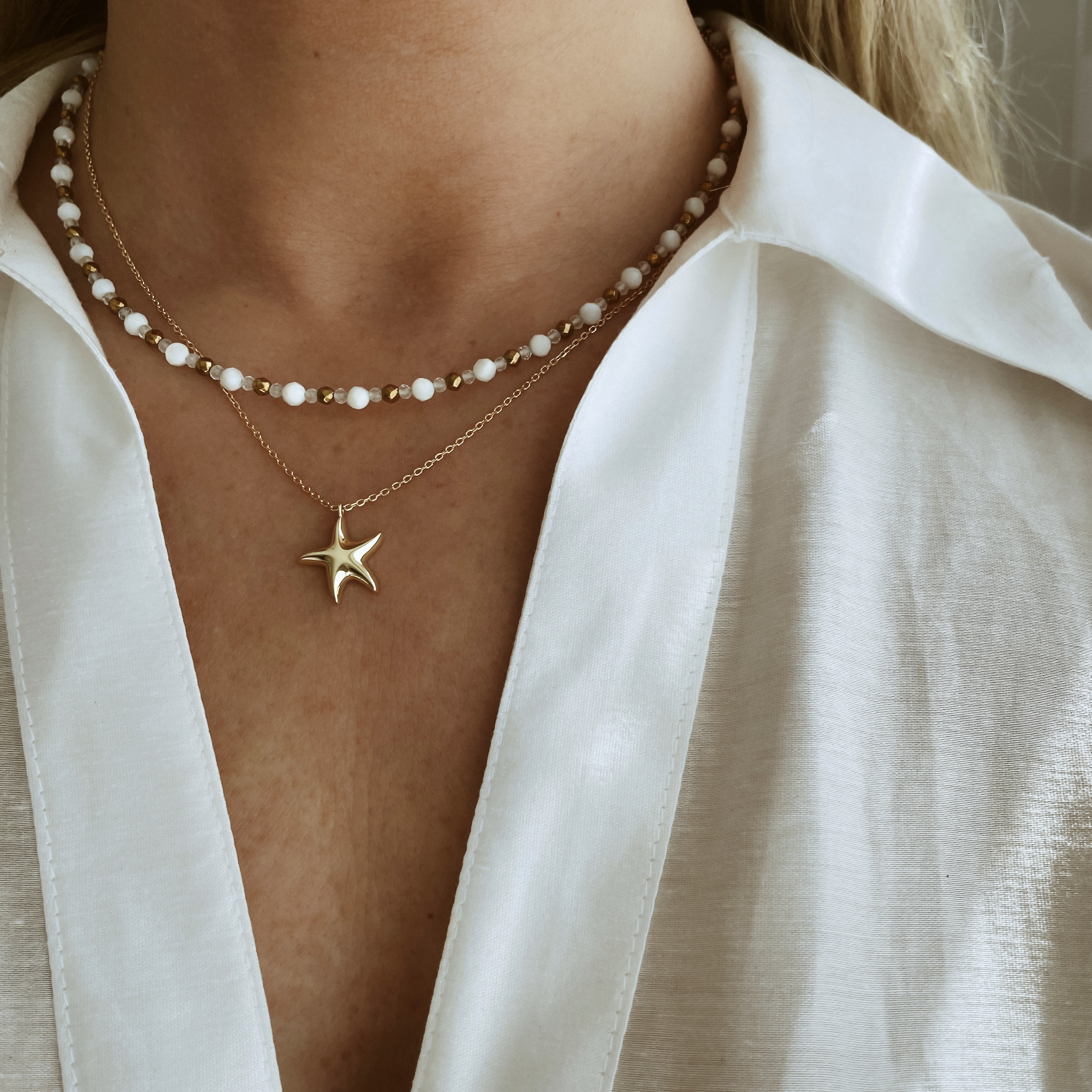 Naszyjnik z motywem rozgwiazdy to idealny dodatek do wakacyjnych stylizacji – subtelny, kobiecy i pełen letniej lekkości.