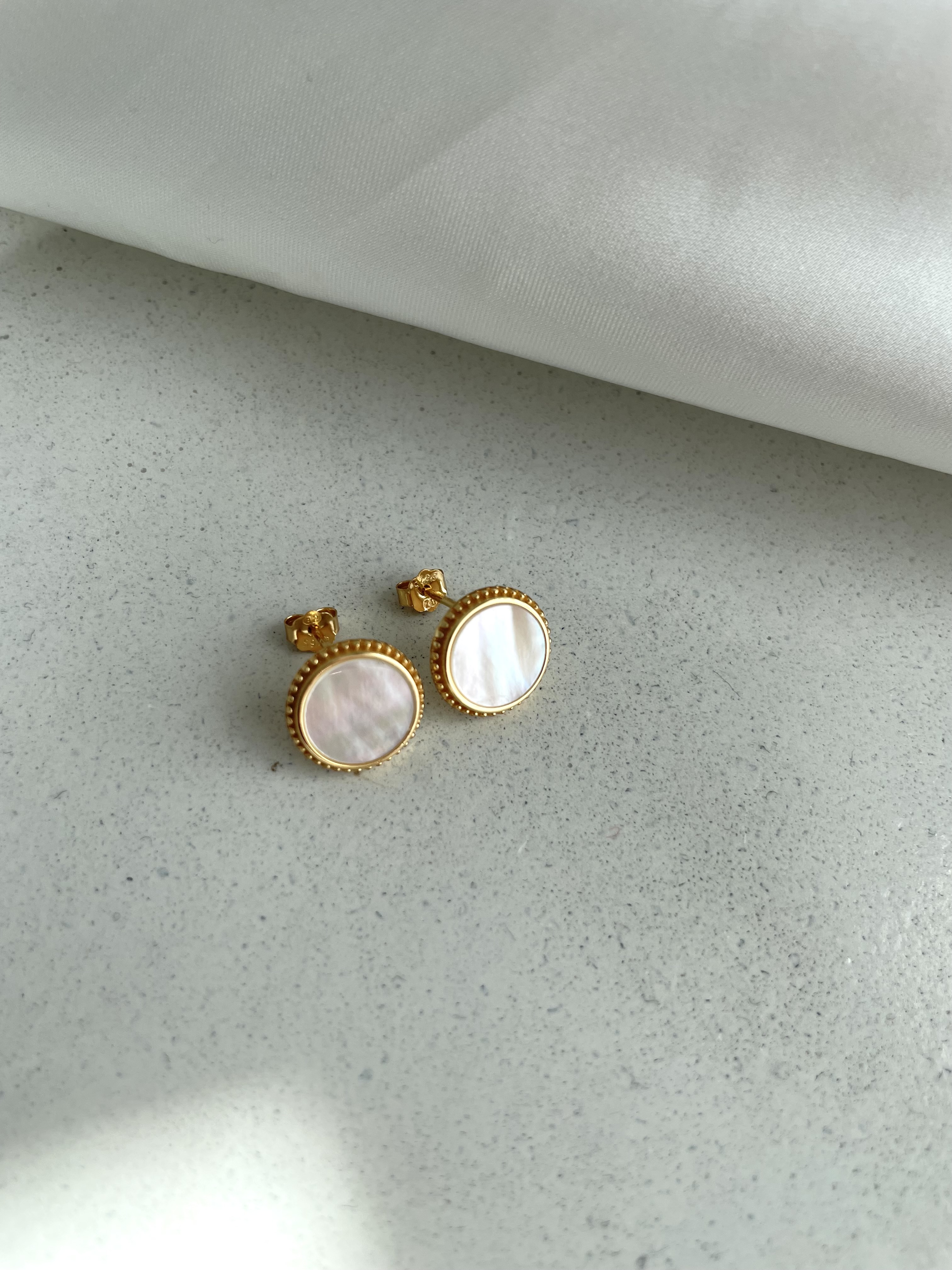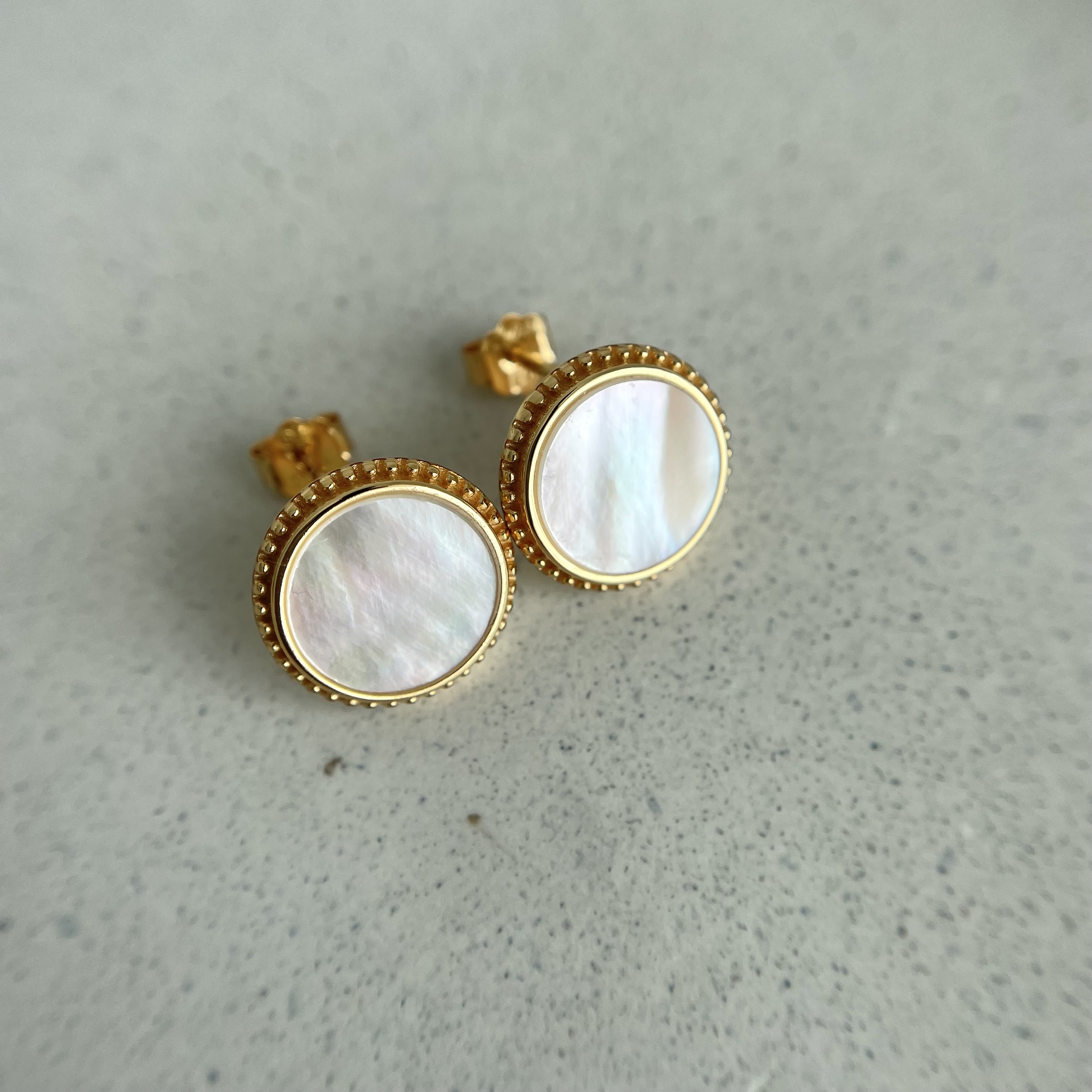 Okrągłe kolczyki z masą perłową srebro pozłacane